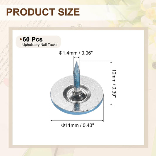 uxcell 60Pcs Upholstery Tacks, 11mmx10mm Flat Head Thumb Tack Decorative Furniture Nails Push Pins for Furniture Sofa Headboards, Blue