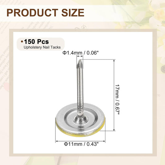 uxcell 150Pcs Upholstery Tacks, 11mmx15mm Flat Head Thumb Tack Decorative Furniture Nails Push Pins for Furniture Sofa Headboards, Gold