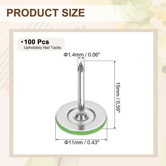 uxcell 100Pcs Upholstery Tacks, 11mmx17mm Flat Head Thumb Tack Decorative Furniture Nails Push Pins for Furniture Sofa Headboards, Green