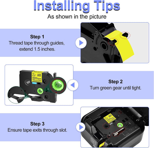 Tape TZe-631 Yellow TZ TZe Compatible with Brother P Touch Label Maker Tape TZe631 TZ631 12mm 0.47'' Laminated Black on Yellow Label Tape for PT D200 D210 D220 D400 PTH110 Cube, 3-Pack