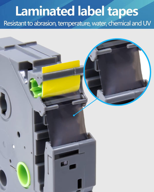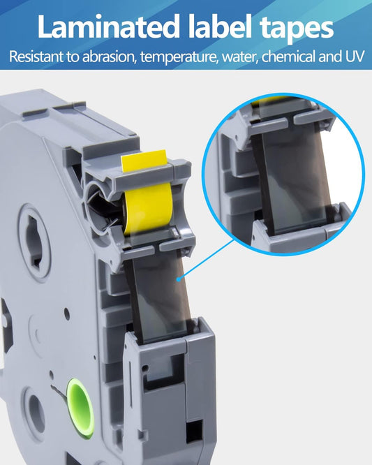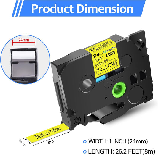 6PK 24mm Yellow Label Tape Compatible for Brother P-Touch Label Maker Tape TZe-651 1 Inch TZe TZ Tape TZ-651 TZe651 24mm 0.94'' Laminated Black on Yellow for PT-D600 D610BT P710BT P750W