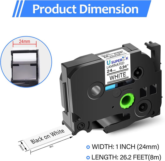 6 Pack 24mm 0.94 Laminated White Tape Compatible for Brother P-Touch Label Maker Tape TZe-251 24mm Label TZe251 1 Inch TZe TZ Tapes TZ-251 TZ251 for PT-D600 D610BT P700 P750W P950NW P710BT