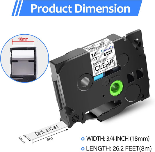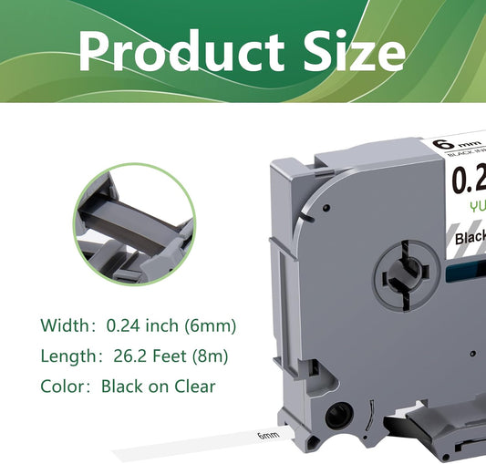 6PK Compatible for Brother P-Touch Label Maker Tape TZe-141 TZ-141 TZe141 TZ141 Black on Clear 18mm 3/4 inch 0.7'' x 26.2ft Laminated TZe TZ Label Tape for PT-H500 PT-910BT PT-530 PT-550
