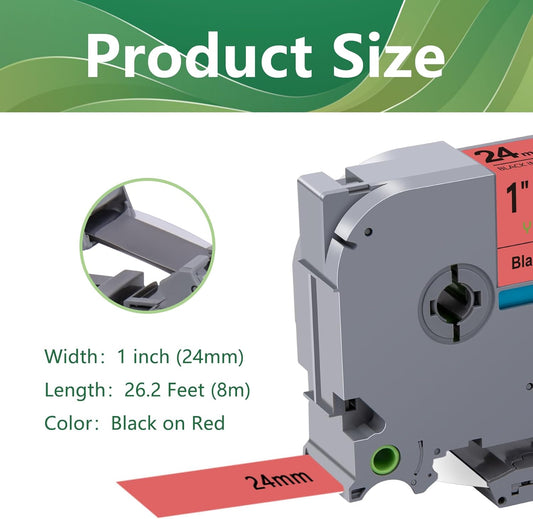 TZe-451 24mm TZe Red Tape Compatible with Brother PTouch TZ TZ-451 TZe451 TZ451 24mm 1 inch Laminated Black on Red Label Maker Tape for PT-E500 PT-D600 PT-P750W PT-P900W Printer, 3-Pack