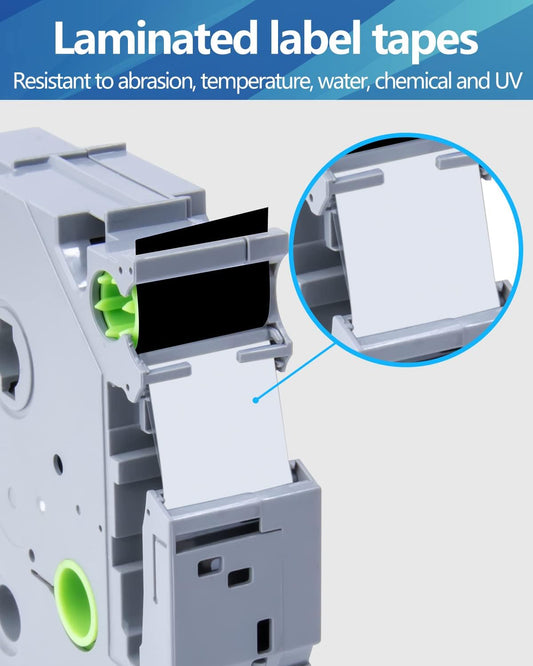 6PK 18mm 0.7'' Laminated White Tape Compatible for Brother P-Touch Label Maker Tape TZe-241 TZe TZ Label Tape TZ-241 TZe241 TZ241 Black on White for PT-D400 D410 D600 D610BT D460BT