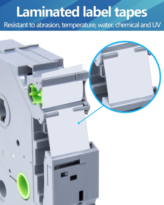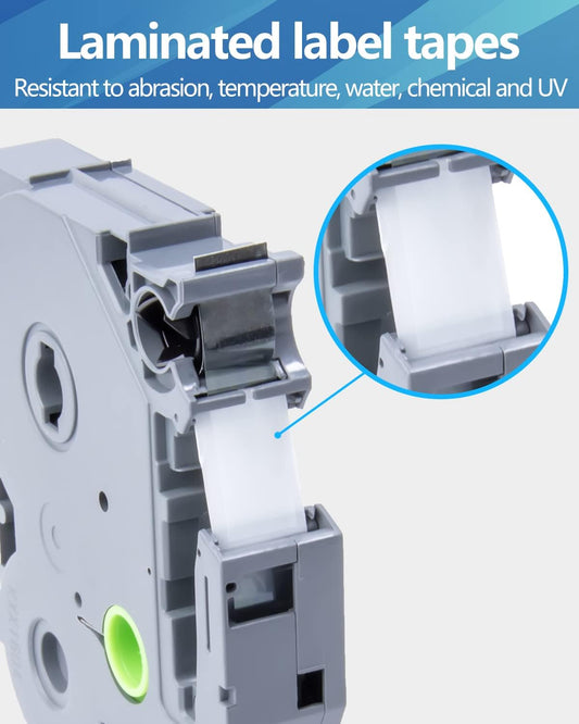 6-Pack Tze 18mm 0.7" Laminated White Compatible for Brother Tze-241 Tze241 Tz-241 Tz241 3/4 Inch Black on White Tz Label Tape 18mm for P Touch Label Maker PTD410 PTD400 PTD610BT PTD600 PTD460