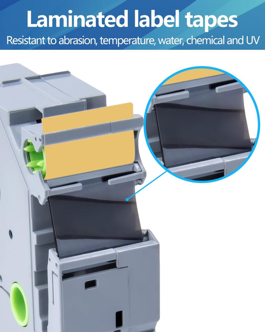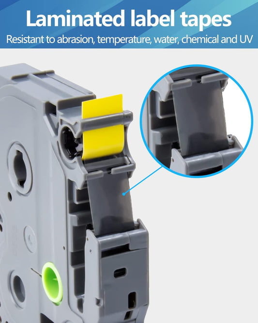 Hehua Tape Tze Tz 12mm 0.47 Black on Yellow Laminated Compatible for Brother TZe-631, TZe631 TZ-631 Label Maker Tape Compatible for Brother Ptouch Tape 12mm 0.47 Yellow for PT-D200, 3 Pack