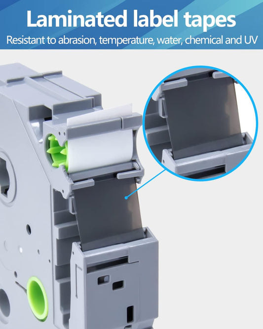 Label Maker Tape TZe-231 Replacement for Brother P Touch PT-D210 PT-D220 PT-H110 PT-D600 D400 by FETIONS, Compatible with TZe TZ 12mm X 8m Laminated Waterproof Label Tape, 6 Pack