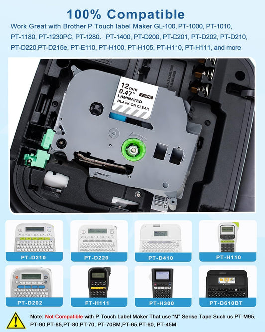 Clear Label Maker Tape Refill Compatible with Brother TZe-131 TZe131 TZe TZ Tape 12mm 0.47 Laminated Clear 1/2'' x 26.2' Black on Clear P Touch Label Tape for PT-D210 PTD220 PT-H110 PT-D600, 5 Pack