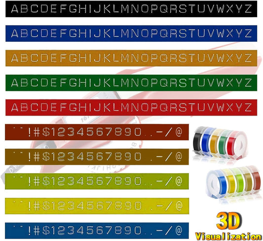 Embossing Tape Compatible with Dymo Embossing Label Maker, 3/8'' x 9.8' Colorful 3D Plastic Organizer Xpress Tape Compatible with Dymo Embossing Office Mate II and Old School Label Makers