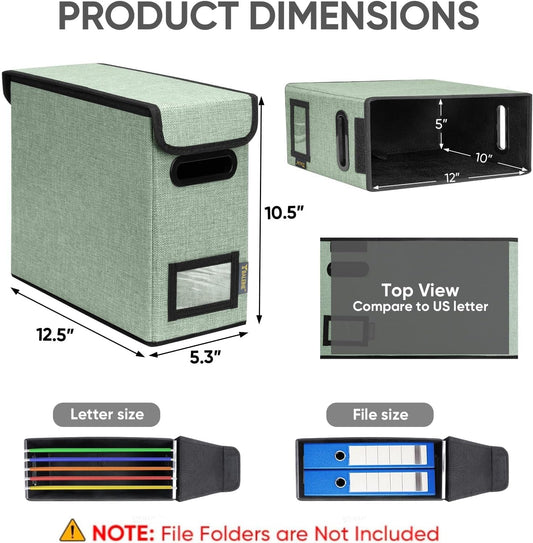 BALEINE File Organizer Box with Lid, Collapsible File Folder Organizer with Plastic Slide, Hanging File Folder Box for Office Document Storage (2 Pack, Green, S)