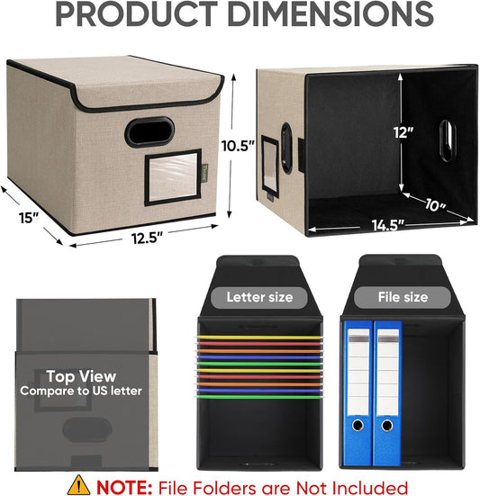 BALEINE File Organizer Box with Lid, Collapsible File Folder Organizer with Plastic Slide, Hanging File Folder Box for Office Document Storage (2 Pack, Beige)