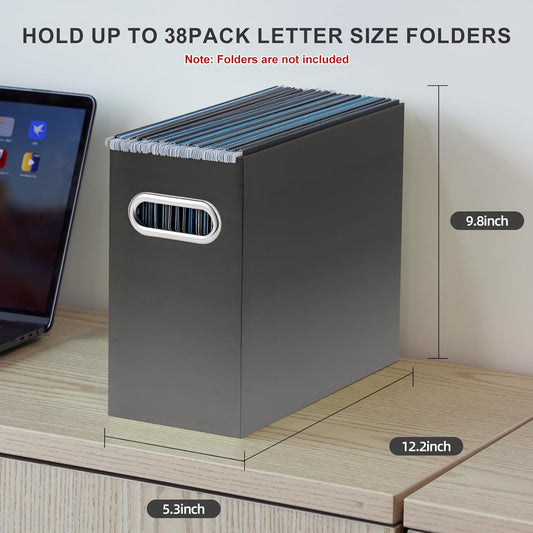 Oterri File Organizer - Small Cardboard Storage Box, Collapsible and Portable With Handle for Letter Size Files, Hanging Folder Box (Dark Grey, Letter Size - 6 Packs)