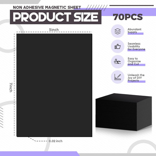 70 Pcs Non Adhesive Magnetic Sheet 5 x 7 Inch for Die Storage Flexible Magnetic Sheets Plain Sheet for Arts and Crafts Scrapbooking DIY Photography, Easy to Cut and Organize