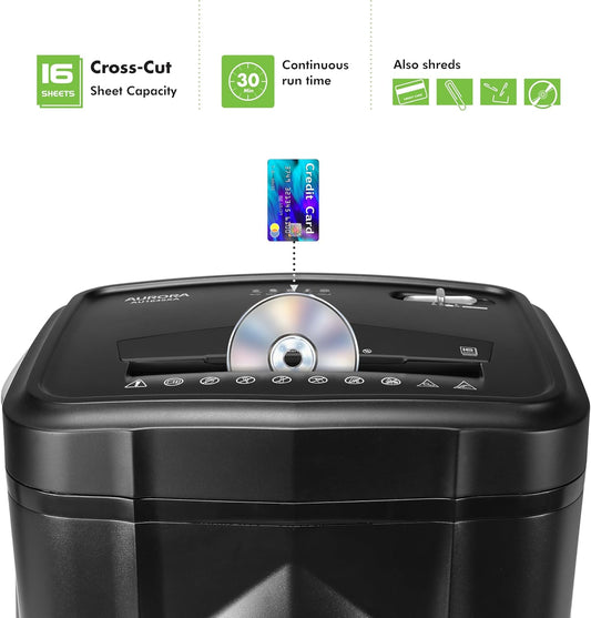 Aurora AU1645XA 16-Sheet Cross-Cut Paper and CD/Credit Card Shredder/5-Gallon Pullout Basket/ 30 Minutes Run Time