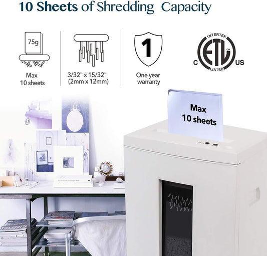 WOLVERINE 10-Sheet Super Micro Cut High Security Level P-5 Heavy Duty Paper/CD/Card Ultra Quiet Shredder for Home Office by 60 Mins Running Time and 6 Gallons Pullout Waste Bin SD9112(White ETL)