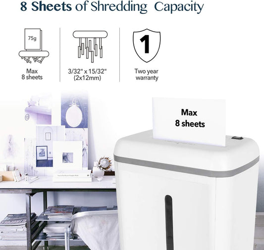 WOLVERINE 8-Sheet Super Micro Cut High Security Level P-5 Ultra Quiet Paper/Credit Card Home Office Shredder with 4.5 gallons Pullout Waste Bin SD9101 (White)