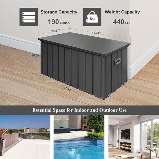 Domi Deck Box 190 Gallon, Waterproof Lockable Steel Outdoor Storage Container for Outside Cushions, Garden Tools and Pools Equipment, Gray