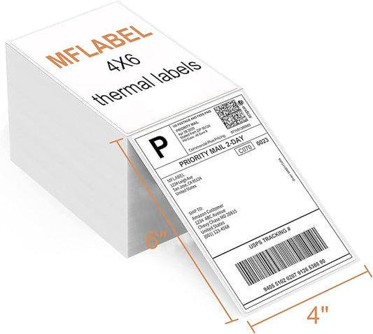 MFLABEL Fanfold 4" x 6" Direct Thermal Labels White Perforated Shipping Labels (2 Stacks)