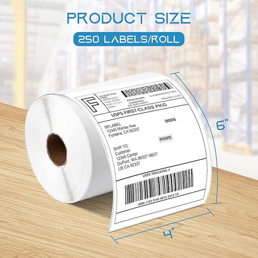 MFLABEL 4x6 Direct Labels, Perforated, Commercial Grade, for Thermal Printer, 250 Labels/1 Roll, 20 Rolls
