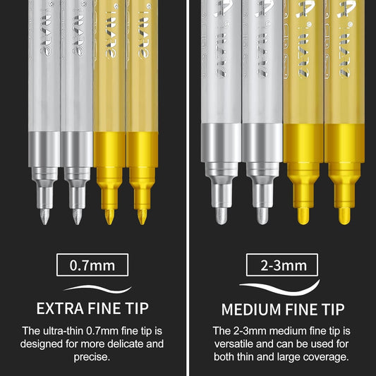 SFAIH Gold & Silver Acrylic Paint Markers - 8 Pack 2-3MM Medium Tip & 0.7MM Extra Fine Paint Pens for Rock Painting, Wood, Metal, Fabric, Plastic, Canvas, Glass, Ceramic, Diy Crafts