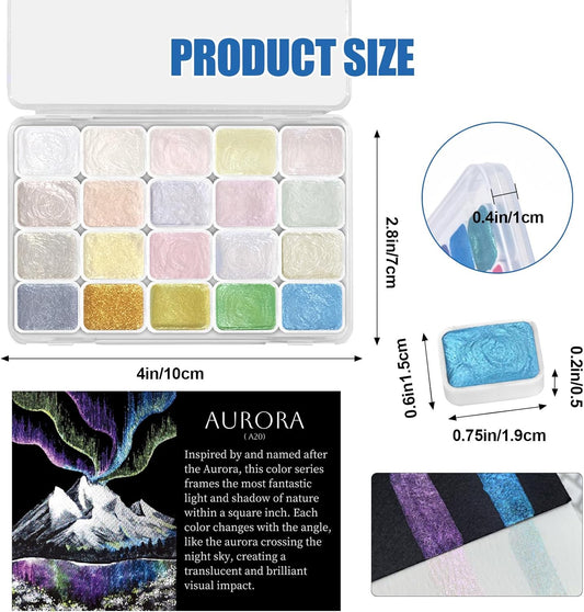 Mini Glitter Watercolor Paint Set, 20 Colors Shimmer Metallic Watercolour Painting Sets, Solid Pearl Water Color Paints for Kids, Adult, 1ml Trial Pack (Aurora)