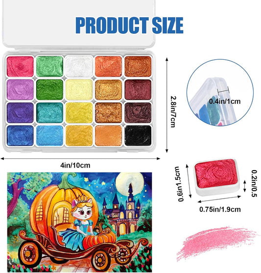 Mini Glitter Watercolor Paint Set, 20 Colors Shimmer Metallic Watercolour Painting Sets, Solid Pearl Water Color Paints for Kids, Adult, 1ml Trial Pack (Pumpkin Castle)