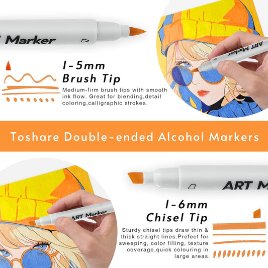 80 Colors Alcohol Markers Set - Double Tip Art Markers Alcohol Based Marker Brush&Chisel Nib Blender Art Pens Permanent Sketch Marker for Kids Adults Coloring and Artist Illustration