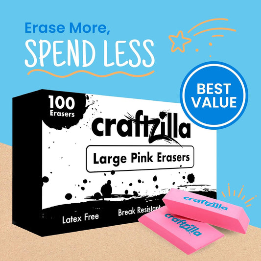 Pink Erasers Bulk 100 Pack - Large Latex- Free Bulk Erasers for Kids, Classroom, and School Supplies - Ideal for Pencils and Drawing - Teacher Supplies - Borradores Escolares