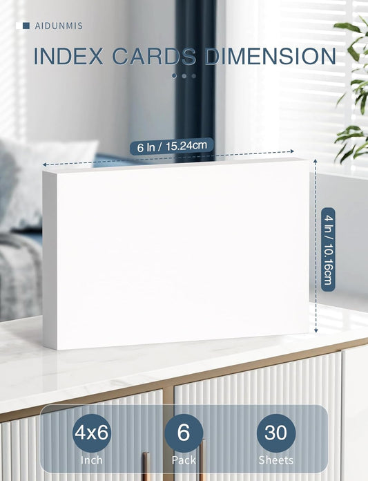 4x6 Note Cards Blank Index Cards, 180 Counts 4 x 6 Index Cards, 4x6 Notecards No Lines for Studying School, Blank on Both Sides, White Note Cards Bulk, 6 Pack of 30 Sheets