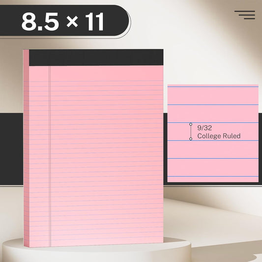 300 Sheets Pink Legal Pads 8.5 x 11 College Ruled Paper 6-Pack Note Pad Narrow Ruled 50 Sheets per Notepad Perforated Writing Pad Durable Sturdy Back 8x11 Pads of Paper