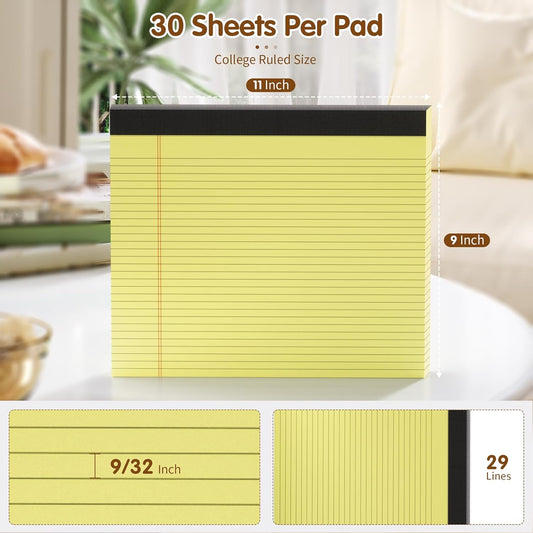 11" x 9.5" Legal Pads College Ruled Notepad 2 Pack White & Yellow Colored Note Pads 30 Sheets Lined Paper Pads 80 GSM Legal Pad 9/32 Inch Writing Pads with Sturdy Back for School, Office, Home