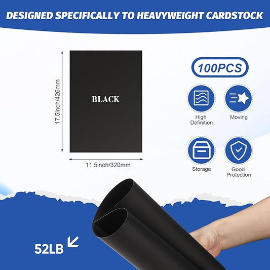 100 Pcs Printer Paper 11 x 17 Inch Copy Paper 52 lb Glossy Paper Heavy Weight Cardstock Tabloid Paper Heavy Card Stock for Presentation Laser Back to School Office Supplies (Black)