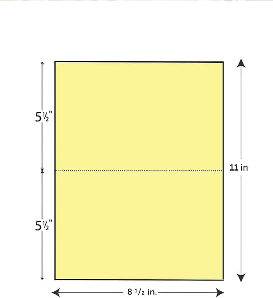 Limited Papers (TM) 8.5x11 Perforated Paper, 20/50 Pound, 75 GSM, Variety of Perforation Sizes and Colors, for Forms, Tickets, Postcards, Business Cards. (Canary, 2 up - horizontal 5.5”)