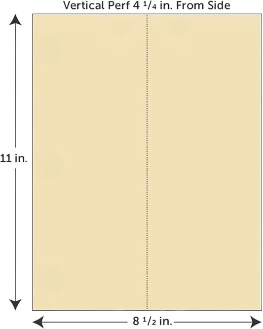 Limited Papers (TM) 8.5x11 Perforated Paper, 20/50 Pound, 75 GSM, Variety of Perforation Sizes and Colors, for Forms, Tickets, Postcards, Business Cards. (Buff, 4 up - horizontal every 2.75")