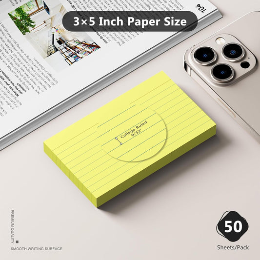 250 Count Index Cards 3 x 5 Inch, Heavyweight Yellow Lined Note Cards Portable Ruled Flash Cards Perfect for Studying and Organizing, Note Taking Study Flashcards for Home, School and Office