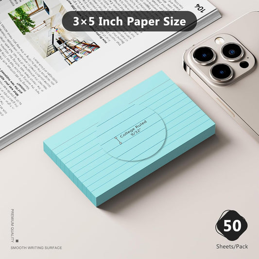 250 Count Index Cards 3 x 5 Inch, Heavyweight Colored Lined Note Cards Portable Ruled Flash Cards Perfect for Studying and Organizing, Note Taking Study Flashcards for Home, School and Office