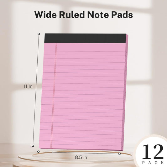 Pink Legal Pads 8.5 x 11, Notepads 8.5 x 11, Wide Ruled, 12 Pack Pink Note Pads 8.5 x 11, Pink Paper 8.5 x 11, Legal Size Paper, 30 Sheet/Notepad, Lined Paper, Writing Pads for Study, Office, Home