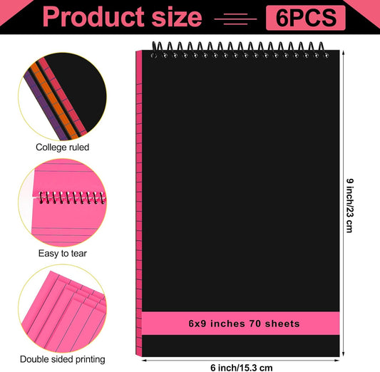 6 Pcs Legal Pad Top Spiral Bound Notebook 70 Sheets Wirebound Notepad Double Sided Ruled Memo Steno Pad with Stiff Back Cover for Business(6 x 9 Inches,No Holes,Rainbow Color)