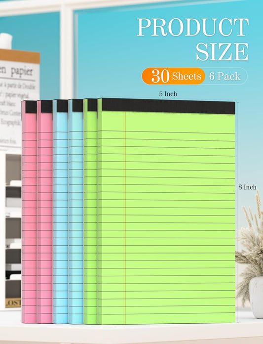 8.5 x 11 Legal Pads, 6 Pack Colored Legal Pads, Wide Ruled, Note Pads 8.5 x 11, Writing Pad, Multicolor Perforated Note Pads with Sturdy White Back, 30 Sheets Per Notepad for School, Home, Office