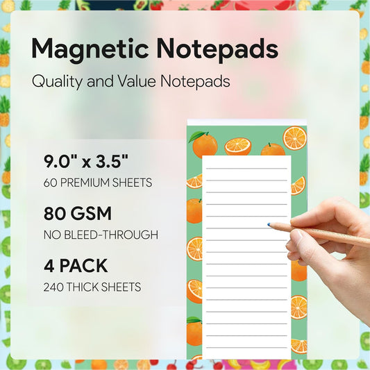 Magnetic Notepads – Notepads for Grocery List, Shopping List, To-Do List, Reminders -Strong Magnetic Back- Memo Notepad | 4 pack Large | Fruit Style 2