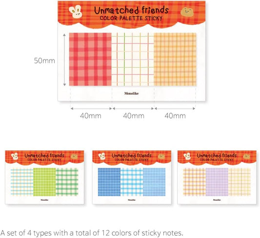 Monolike Color Palette Sticky Unmatched Friends B Set 4p - Self-Adhesive Memo Pad 30 Sheets