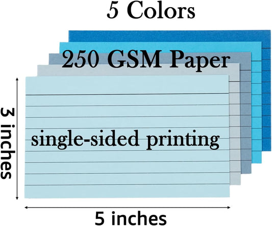 100 Sheets 3x5 Colored Ruled Note Cards Index Cards, 250 GSM Heavy Flashcards, 5 Blue