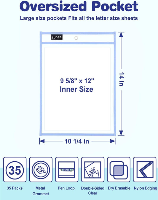 Dry Erase Pockets 30 Pack EASYWipeXL, Oversized 10"×13" Heavy-Duty Reusable Dry Erase Pocket Sleeves, Save Time & Paper with Quick Clear Pocket Sleeves for Classroom, Office & Homeschool Worksheets