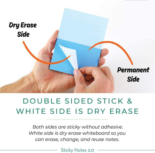 Self-Stick Notes 8x4 inch | Sticks to Any Surface Without Glue | Reusable White Dry Erase | Great for Classroom and Home Office (Assorted Colors, 8x4 inches)