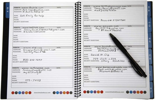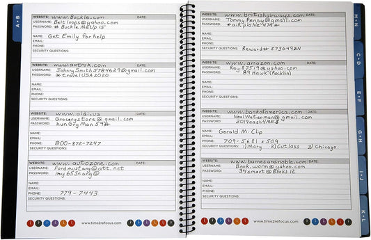 RE-FOCUS Password Book with Alphabetical Tabs 10"x7.5" Spiral Bound Credentials keeper Saves All Internet Login Details (Black)