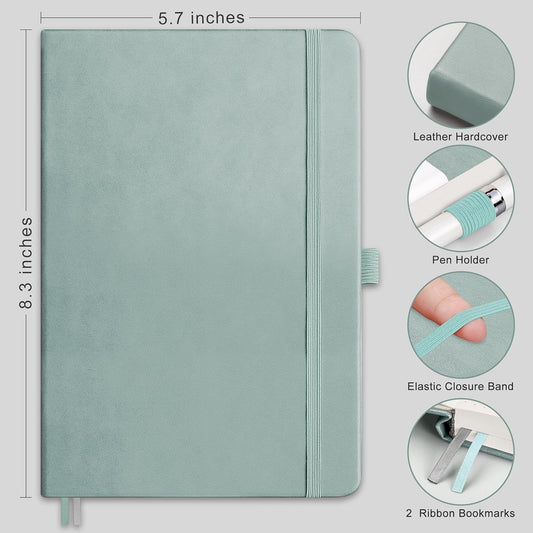 RETTACY Blank Journal Notebook, 192 Pages, A5 Medium Size (5.7'' x 8.3''), Leather Hardcover, 100 GSM Thick Paper, for Sketching, Drawing, Painting (Light Green)
