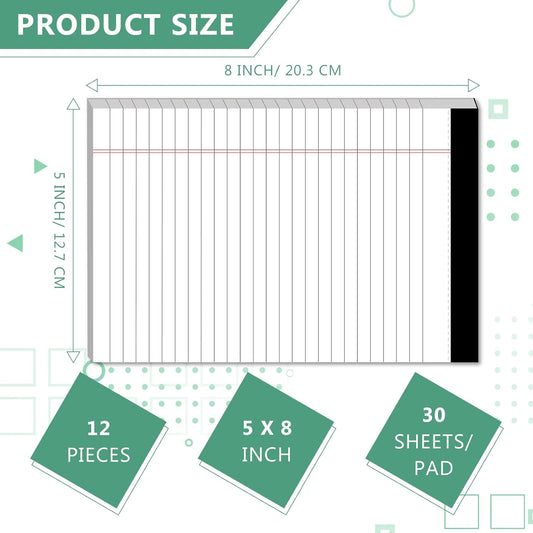 12 Pack Note Pads 5x8, Small Legal Pads 5x8 White Writing Paper for Work, Mini Notepads College Ruled Paper with Sturdy Back 25 Lines, Perforated Legal Note Pad 5" x 8", 30 Sheets Per