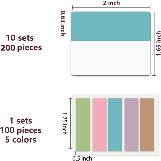 ELII 300 PCS Tabs 2 Inch Sticky Index Tabs,Writable and Repositionable Page Markers File Tabs Self Adhesive, Tape Flags for Pages Notebooks