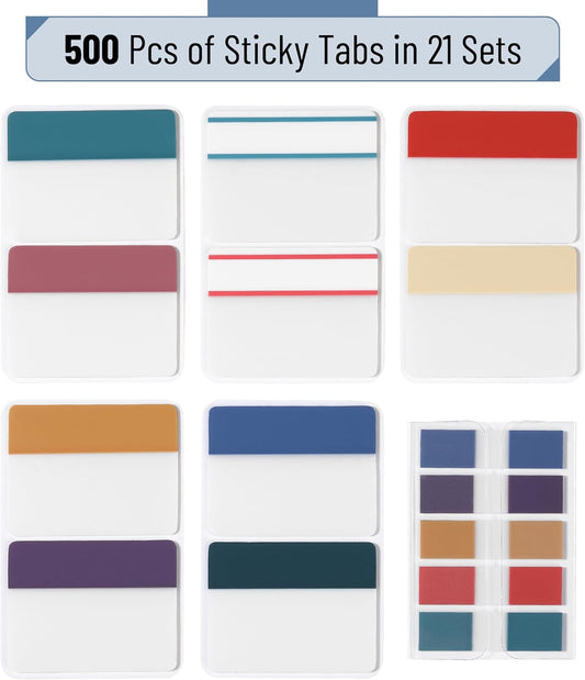 Mr. Pen Sticky Index Tabs - 500 Pcs, 21 Sets, Colorful Page Markers for Binders, Books, & Notebooks